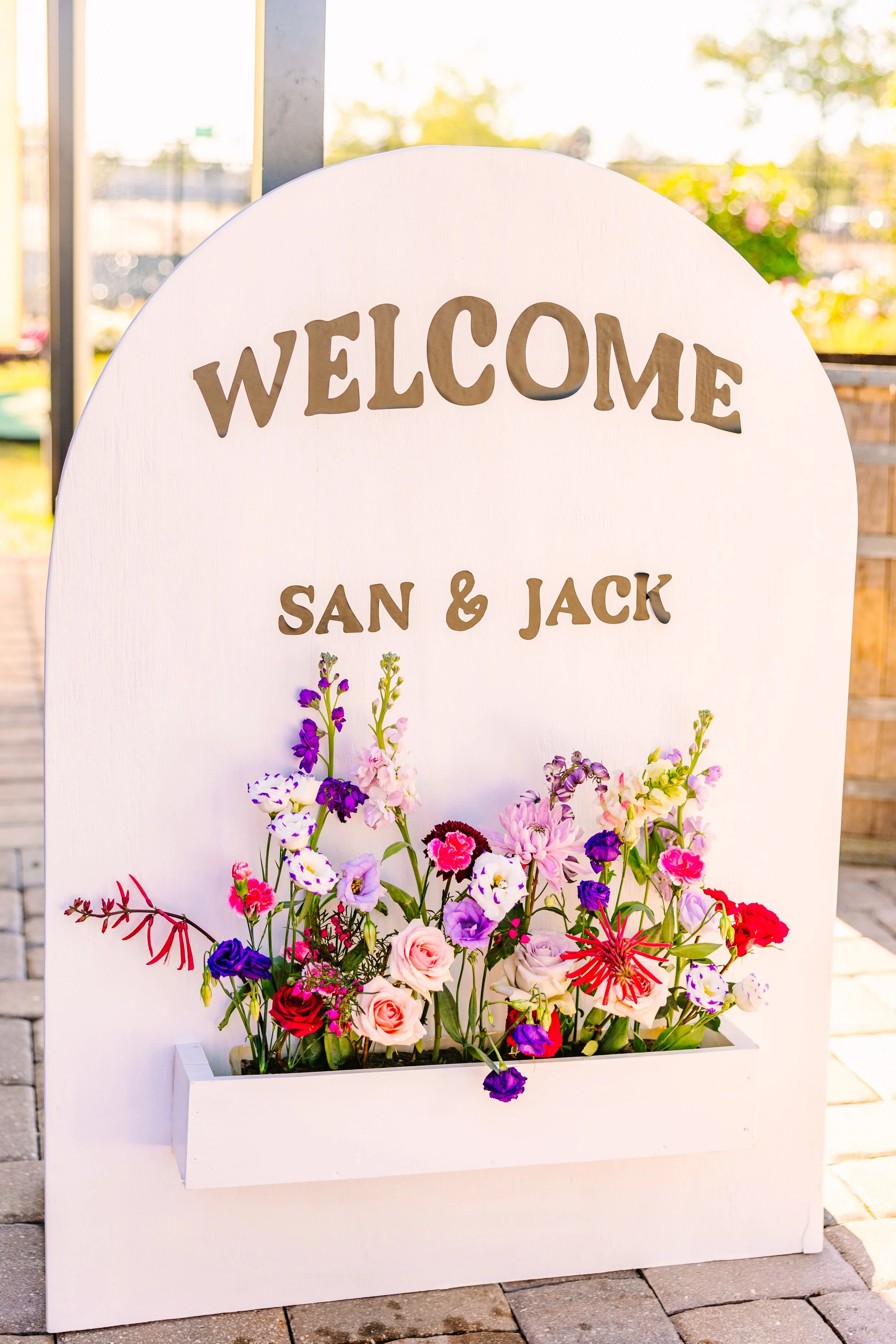 Make your entrance unforgettable with our handcrafted arched wooden welcome sign—perfect for weddings, anniversaries, birthday parties, and more. Featuring a built-in flower box, it’s designed to be beautifully customized with fresh or faux blooms to match your event’s style.
